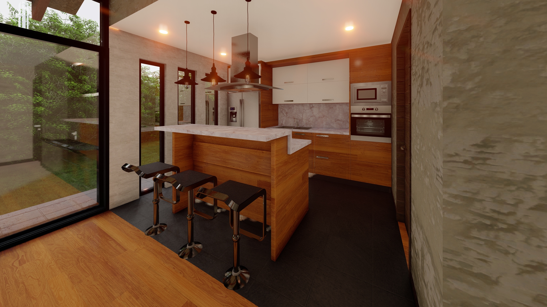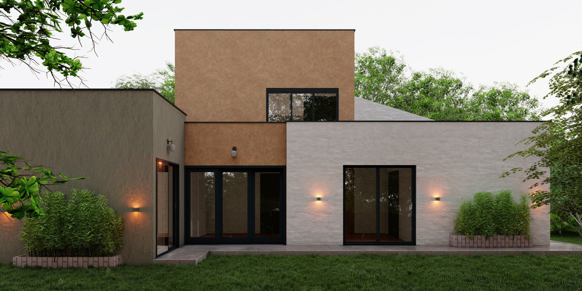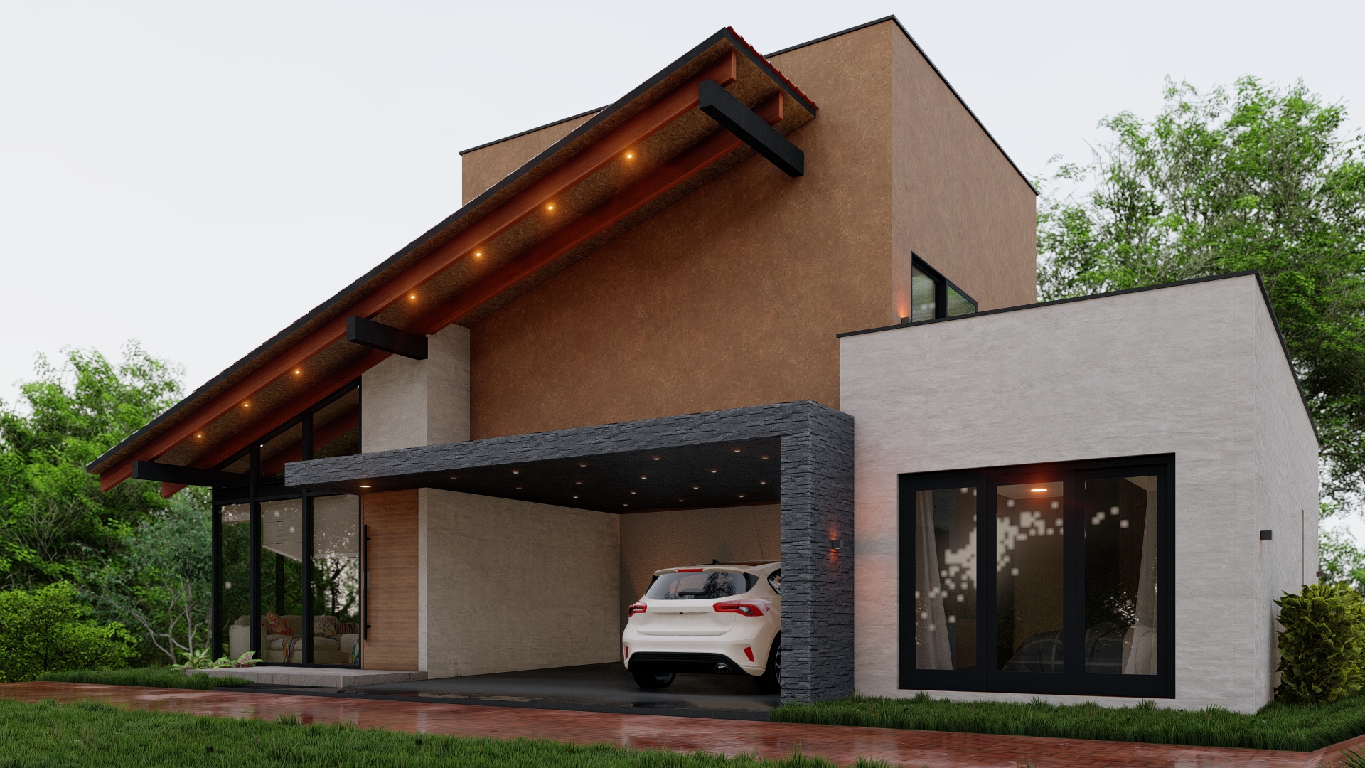 Con una superficie construida de 250 m2 en un terreno de 1000 m2, esta casa cuenta con tres dormitorios y una amplia área social en la planta baja, mientras que en la segunda planta se encuentra un espacio de estar conectado con una terraza que ofrece vistas panorámicas de los alrededores. Además, la casa cuenta con amplias áreas verdes dispuestas en tres terrazas que se integran perfectamente con su topografía.
