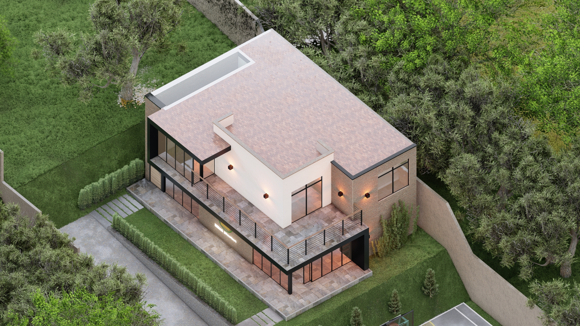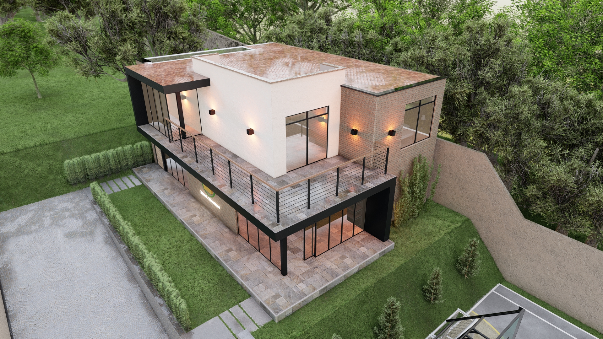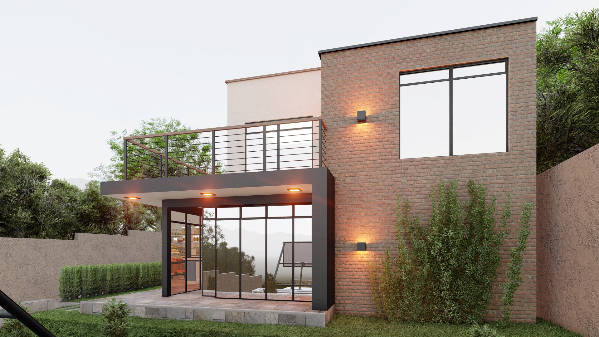 La Casa Nuova Vita es un ejemplo de arquitectura minimalista, que combina la elegancia y la simplicidad en un diseño sobrio y funcional. La materialidad predominante en su construcción es el ladrillo, que aporta un carácter sólido y resistente, pero también acogedor y cálido. El contraste lo proporcionan las paredes enlucidas en blanco, que aportan luminosidad y claridad al espacio, y los detalles en negro, que destacan la estructura metálica y confieren un toque moderno y sofisticado.