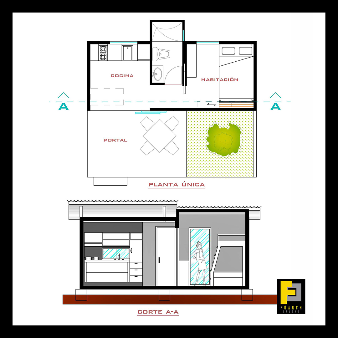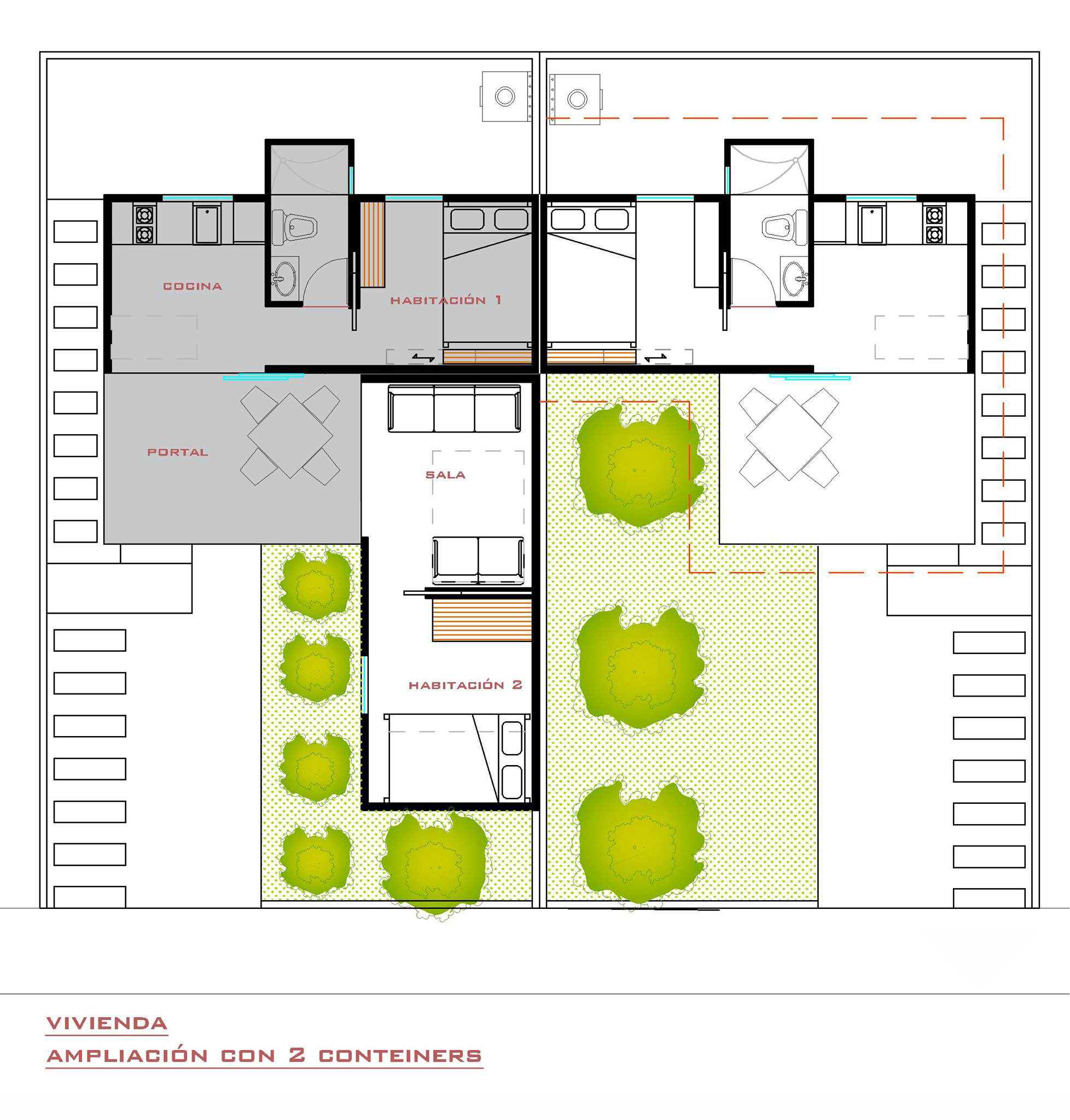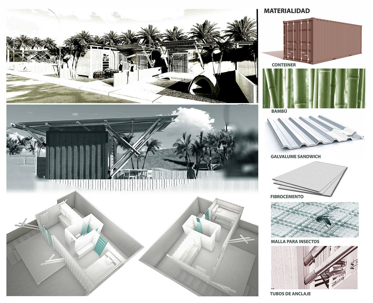 Proyectaron una Vivienda en containers, con el fin de ayudar a los afectados por el terremoto del 16/4/2016 el cual se encuentra emplazado en un lote de 12m X 7,10m, lo que facilita crecer a la vivienda dentro de su propia área, pensando que en el futuro se incluirá otro container, sumando un espacio habitable de 40m² en su totalidad, sin descartar la posibilidad de crecer en altura.