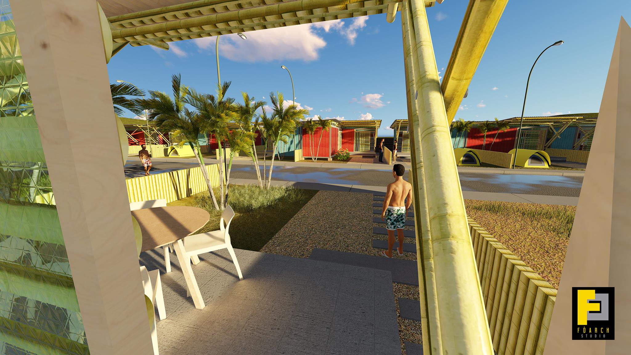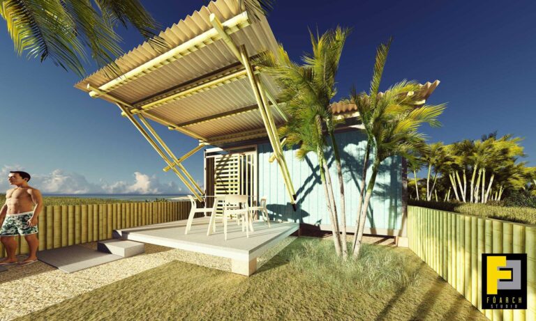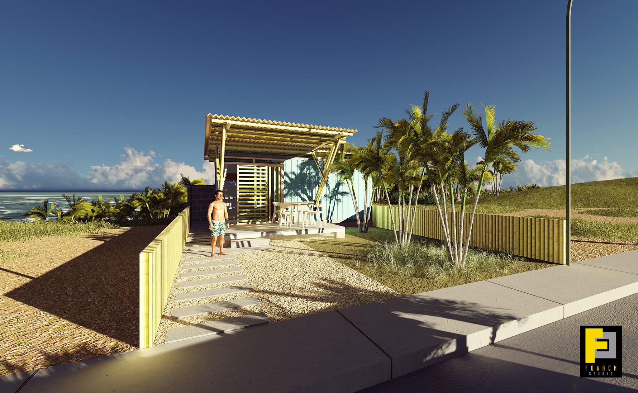 Proyectaron una Vivienda en containers, con el fin de ayudar a los afectados por el terremoto del 16/4/2016 el cual se encuentra emplazado en un lote de 12m X 7,10m, lo que facilita crecer a la vivienda dentro de su propia área, pensando que en el futuro se incluirá otro container, sumando un espacio habitable de 40m² en su totalidad, sin descartar la posibilidad de crecer en altura.